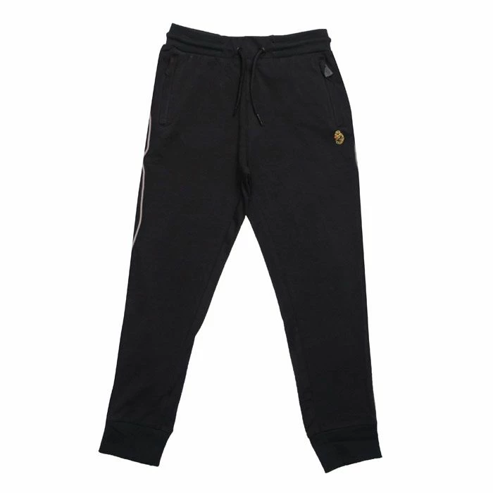 Junior Boys Luke 1977 Badger Beat Jog Pant in black.- Elasticated waistband with drawstring.- Three zip pockets.- Ribbed ankle cuffs.- Side piping detailing.- Embroidered branding.- 95% Cotton 5% Elastane. Machine washable. – Ref:M390313JNRAJ