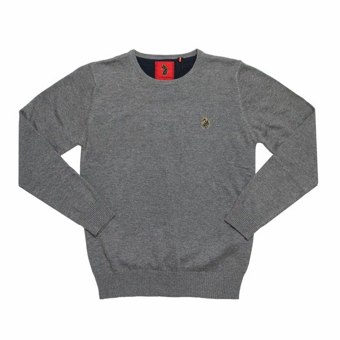 Infant Boys Luke 1977 Gerrard Knit in grey.- Crew neck.- Long sleeves.- Ribbed cuffs and hem. – Embroidered lion crest on the chest.- 100% Cotton. – Ref:M360685JNRJB