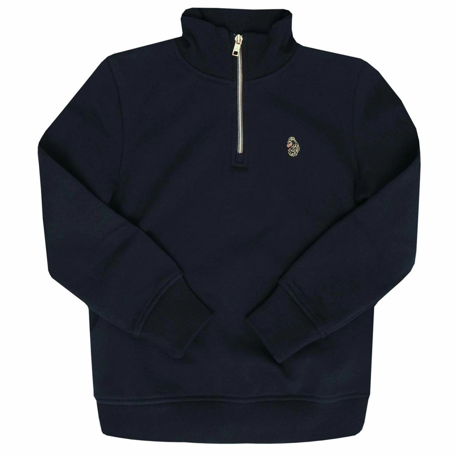 Junior Boys Luke 1977 Higgs Zip Sweat in black.- Ribbed funnel neck.- Half zip fastening.- Ribbed cuffs and hem.- Iconic LUKE BLACK GOLD RED lion head embroidery.- Iconic LUKE tri-colour trim tape.- 60% Cotton 40% Polyester.- Ref:M560334JNR