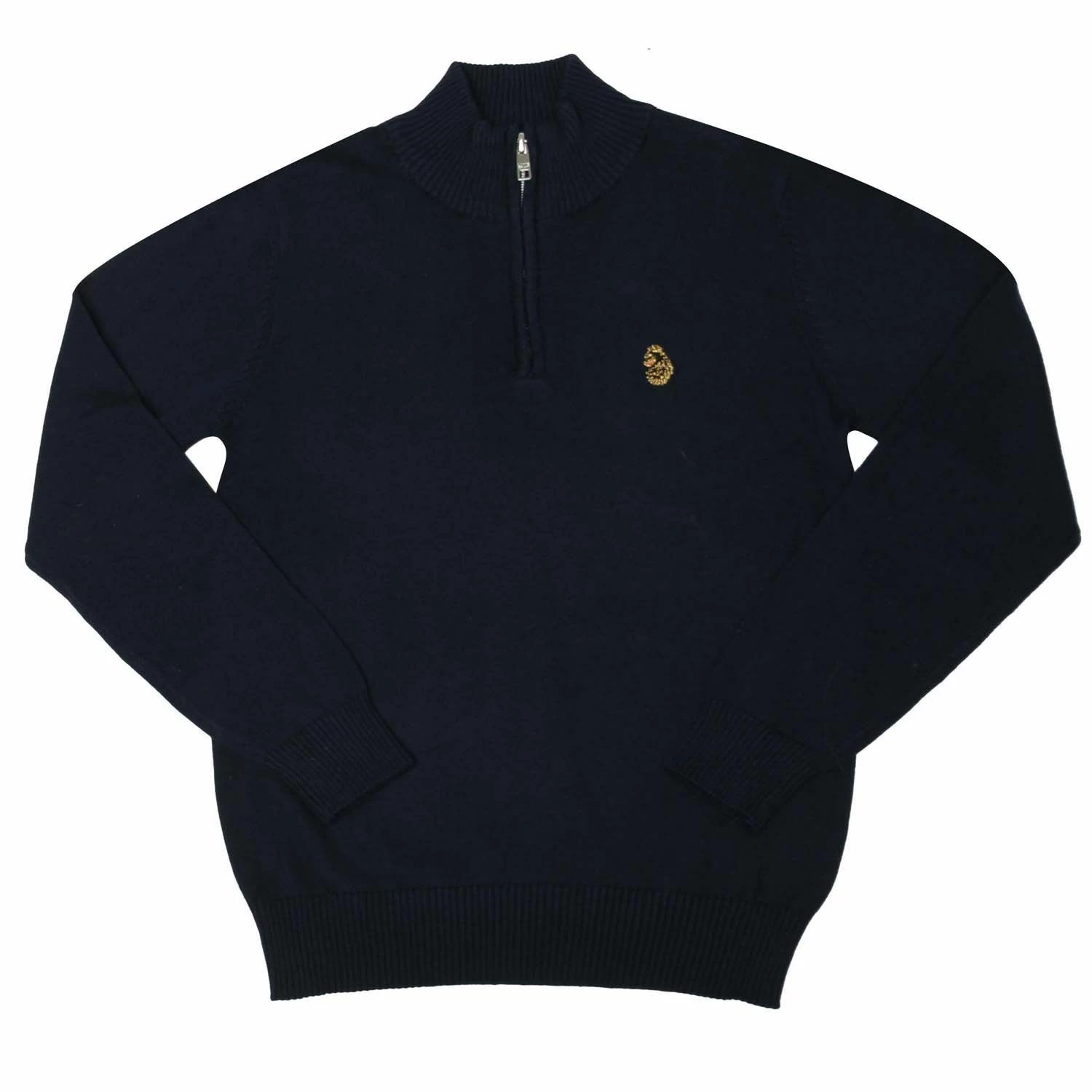 Junior Boys Luke 1977 Pretender ¼ Zip Jumper in navy.- High neck collar.- Long sleeves.- 1-4 zip fastening.- Ribbed cuffs and hem.- Embroidered branding.- 100% Cotton. Machine washable. – Ref:M350612JK
