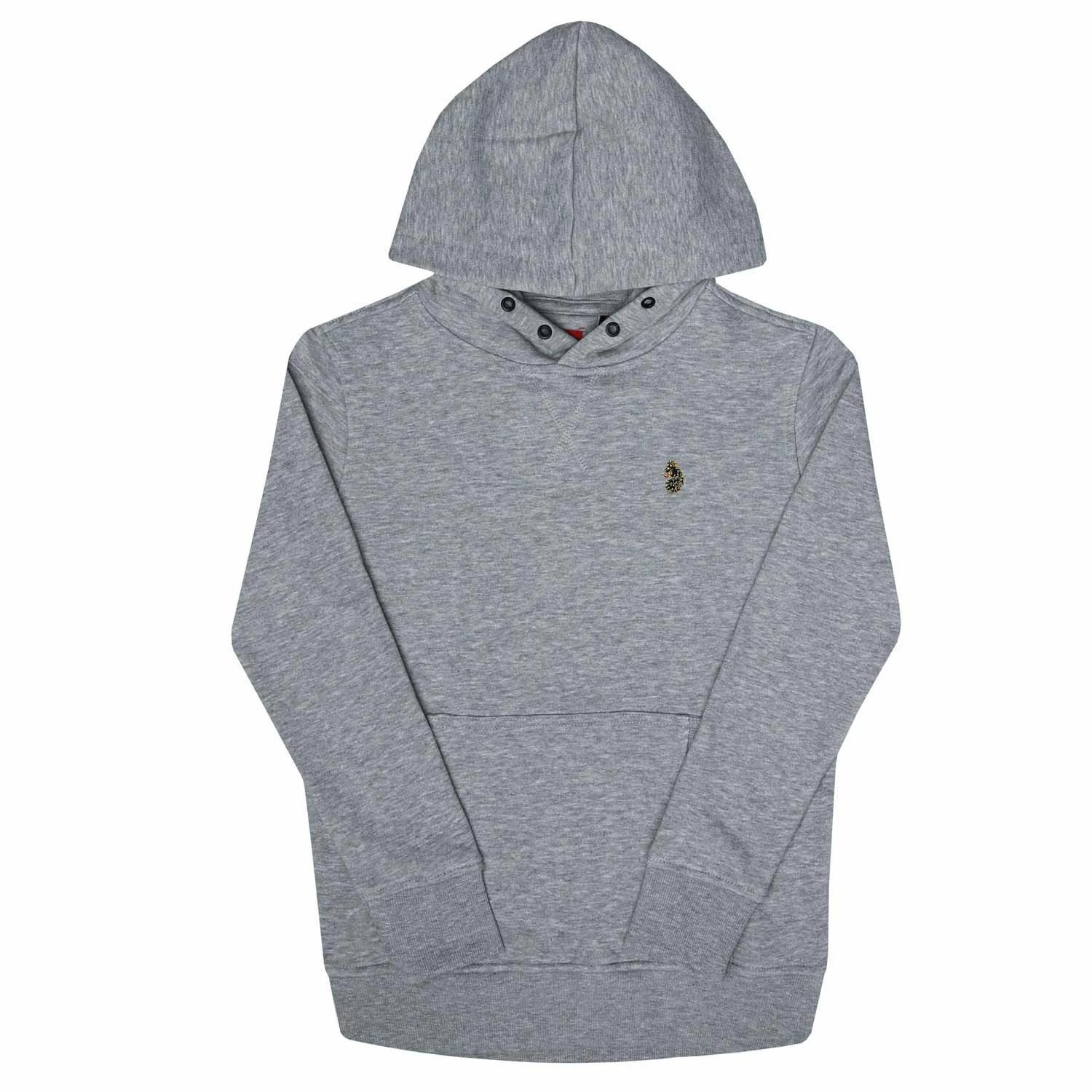 Junior Boys Luke 1977 Sneaker Freak Hoody in grey.- Lined hood.- Pouch pocket.- Ribbed cuffs and hem.- Embroidered gold logo.- 76% Cotton 19% Polyester 5% Viscose. – Ref: M320316JNRB