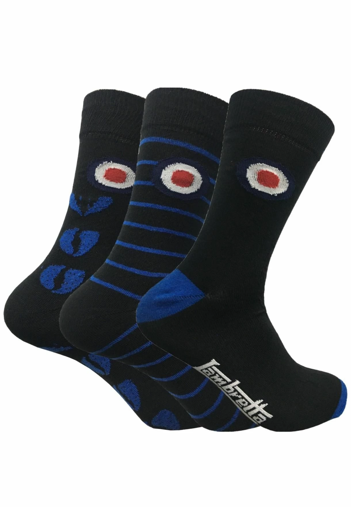 Lambretta 3 Pairs Exclusive Cotton Rich Socks Multicoloured.