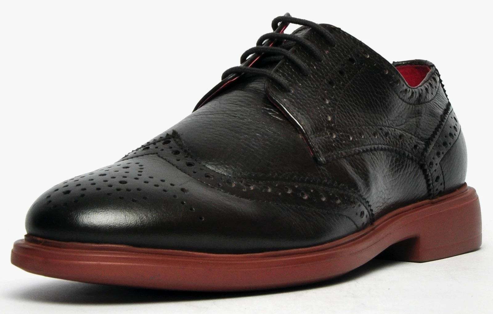 The Lambretta Spencer is a high-end designer brogue shoe. Achieve the perfect mix between smart and casual in these Lambretta brown leather mens brogue shoes. Crafted in a sleek design with a classic lace up system, durable outsole with a slight raised heel and premium leather upper, these shoes will compliment a variety of outfits.