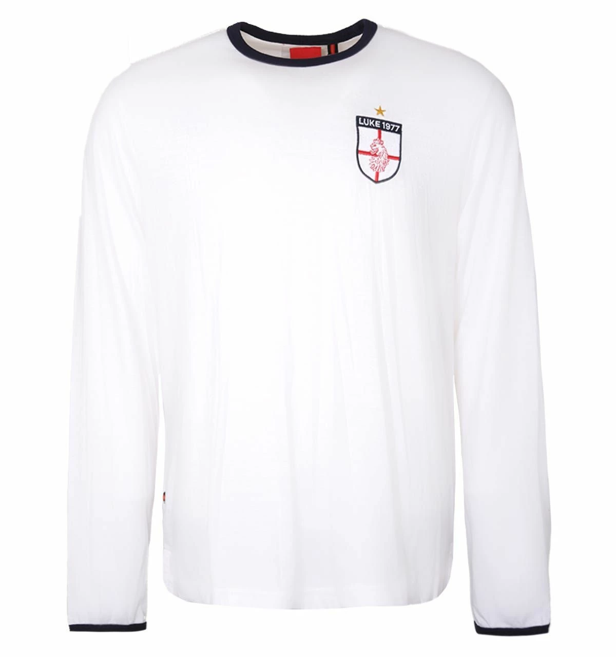 Luke 1977 is, without a doubt, the go-to brand if you’re after a well-crafted, witty and masculine item. Finished with the signature Luke Lion logo, you’re looking at one of the UK’s top contemporary menswear brands.The Bobbys Legends Long Sleeve T-Shirt combines classic style with football-inspired aesthetics. Crafted from pure cotton jersey and features a timeless ringer tee design with a contrast crew neck and long sleeves with contrast cuffs. It is finished with an embroidered football badge on the chest infused with signature Luke 1977 branding. Regular Fit, Pure Cotton Jersey, Contrast Crew Neck, Long Sleeves, Contrast Cuffs, Side Seam Hem Splits, Luke 1977 Branding. Style & Fit:Regular Fit, Fits True to Size. Composition & Care:100% Cotton, Machine Wash.