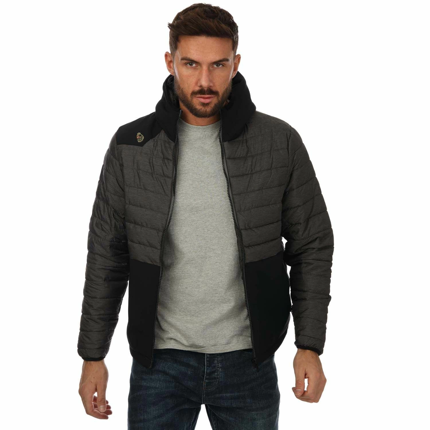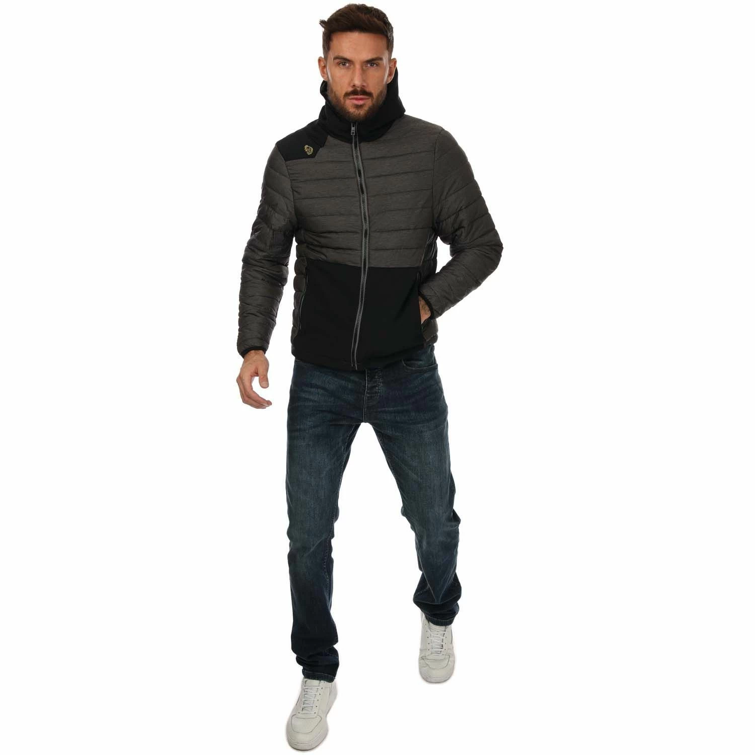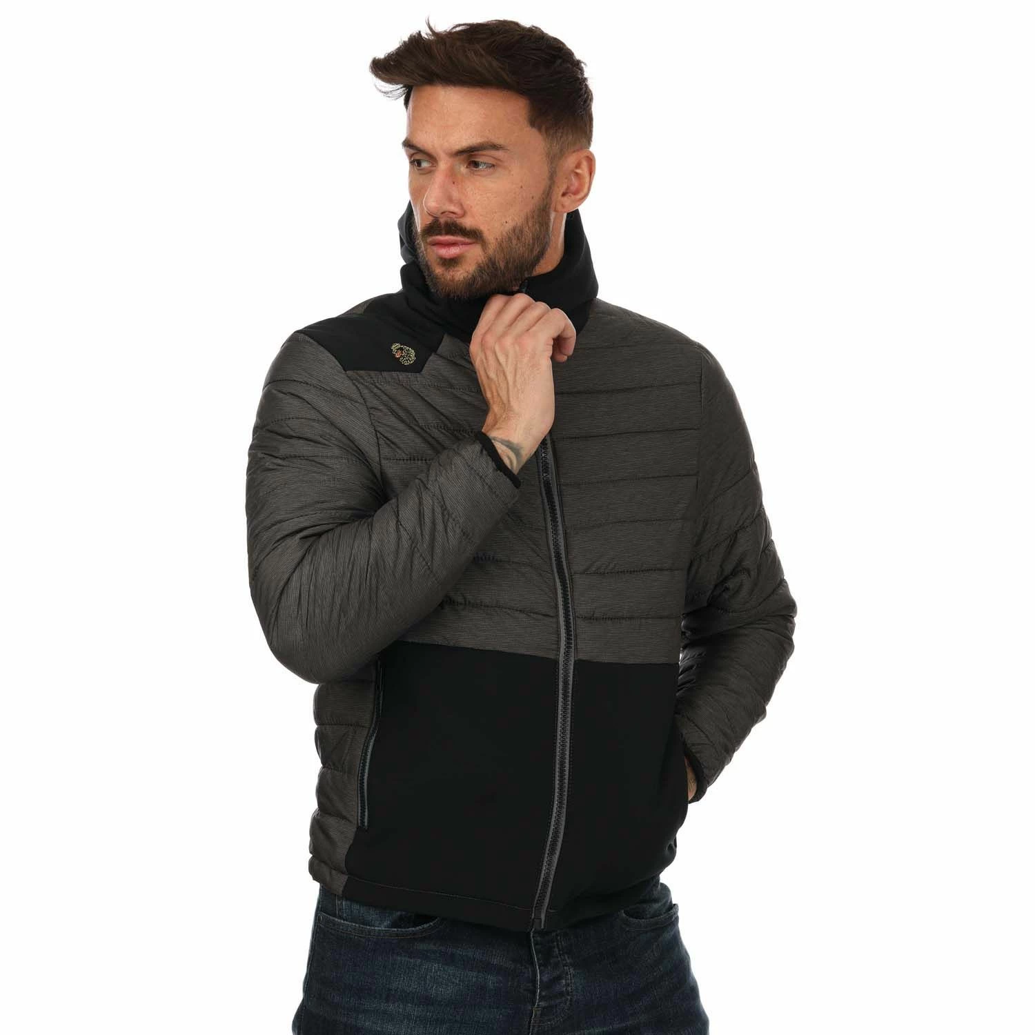 Mens Luke 1977 Bubbla 2 Jacket in grey marl.- Fixed hood with stretch binding trim.- Exposed zip fastening.- Long sleeves with stretch binding trim at cuffs.- Quilted nylon shell with recycled padding.- Zipped side pockets.- Inner slip pocket.- Embroidered Lion crest logo at right shoulder.- Fully lined.- Shell: 100% Nylon. Soft shell: 95% Polyester 5% Elastane. Lining: 100% Polyester. – Ref: M560724