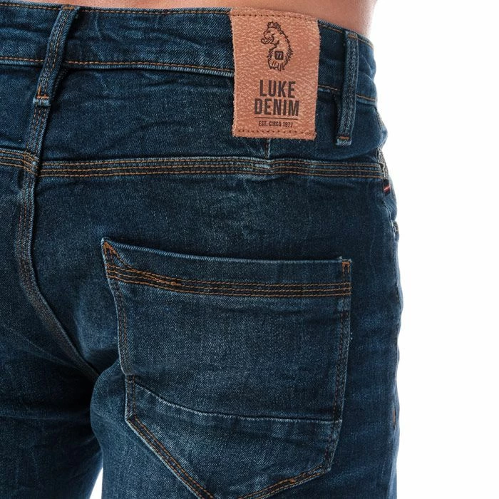 Mens Luke 1977 Freddie Fast Jeans in Denim.- Five pocket styling.- Button fly.- Belt loops to the waist.- Whiskered faded effects to the thighs.- Branding details to pocket and rear tab.- Slim straight fit. – Stretch denim for added comfort.- Contrast stitching.- Short inside leg length approx. 30in Regular inside leg length approx. 32in. Long inside leg length approx. 34in.- 98% Cotton 2% Elastane. Machine washable at 30 degrees. – Ref: M420505 Measurements are intended for guidance only.