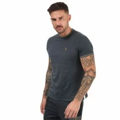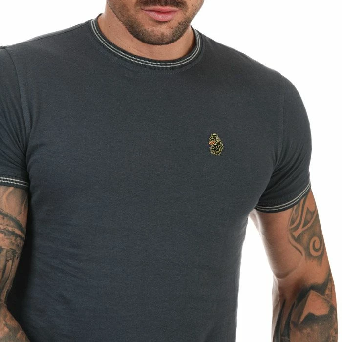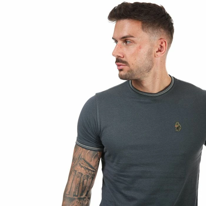 Mens Luke 1977 Looper Contrast Rib Neck T- Shirt in grey.- Ribbed crew neck.- Straight split hem.- Contrast tipping on collar and cuffs.- Embroidered lion on chest.- 100% Cotton. Machine washable. – Ref: M440106CHARCOA