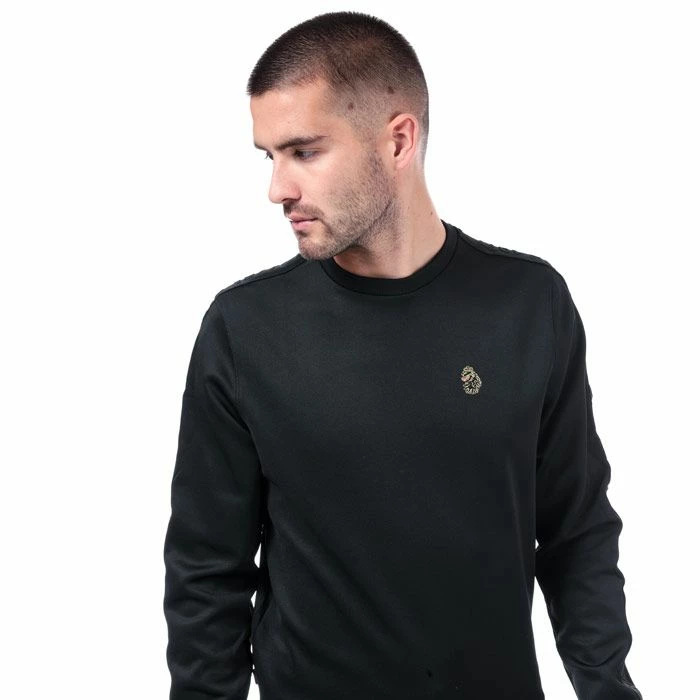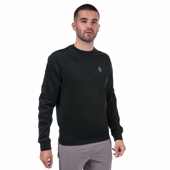 Mens Luke 1977 Tricco Sweat in Black.- Crew neck.- Ribbed collar.- Long sleeves.- Branded sleeve tape.- Ribbed cuffs and hem.- Luke 1997 Lion badge to chest.- Woven tab to seam.- Shoulder to hem 27in approximately.- 90% Polyester 10% Elastane. Machine Washable.- Ref: M470340SMeasurements are intended for guidance only.