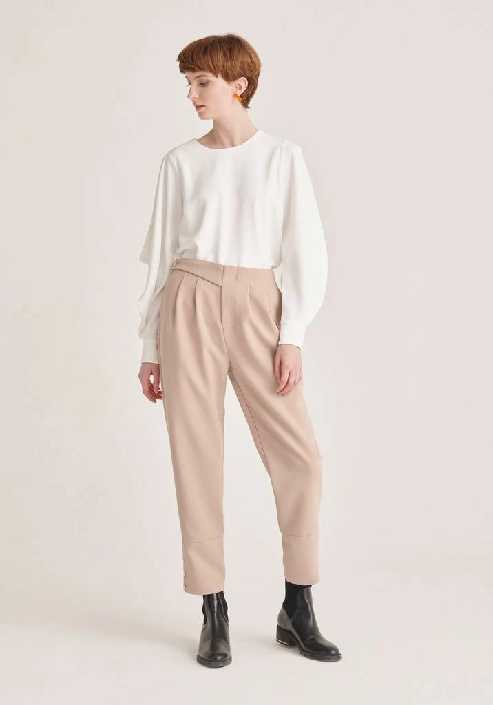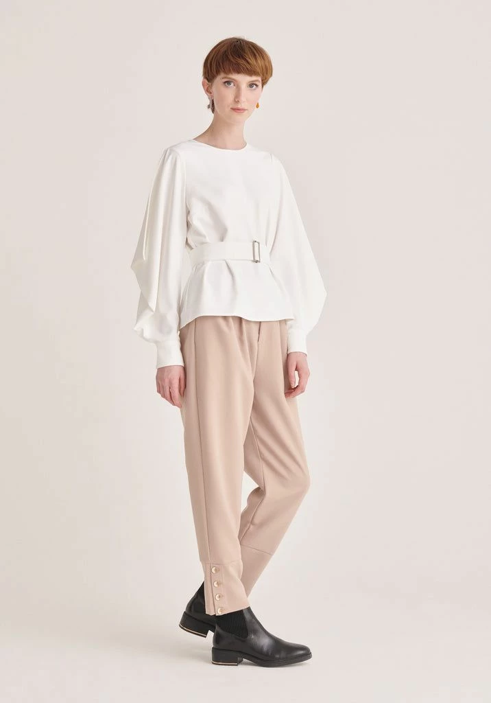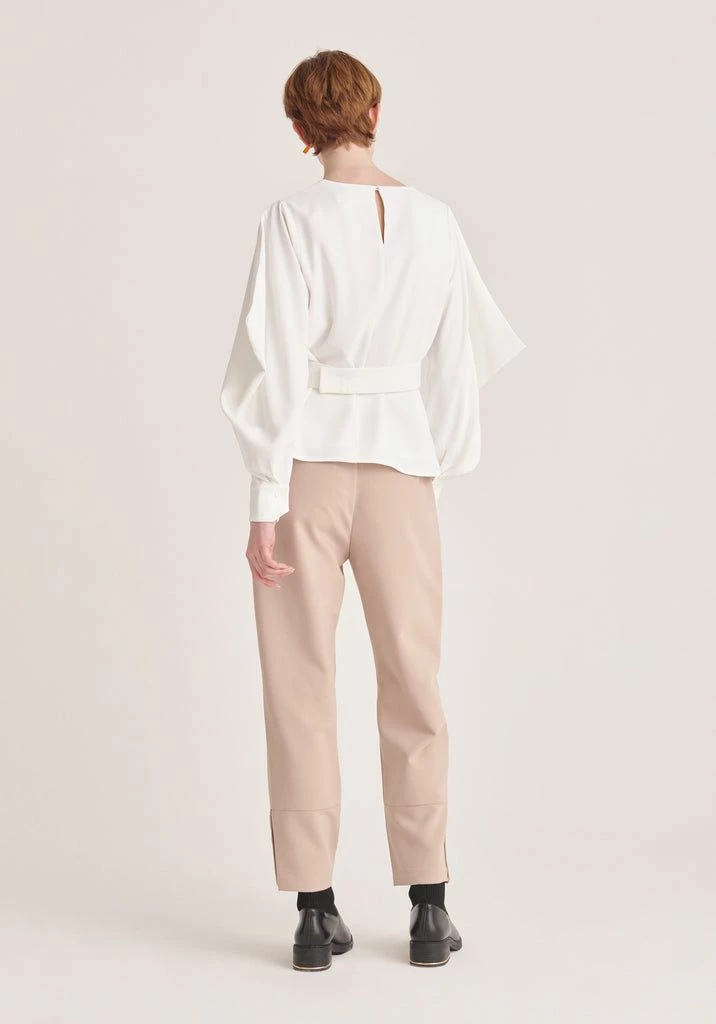 This belted blouse is one of a kind and perfect for those who love to experiment. It features re-invented batwing sleeves and fitted cuffs that frame the relaxed fit. Use the belt to draw attention to your waist and adjust the volume.