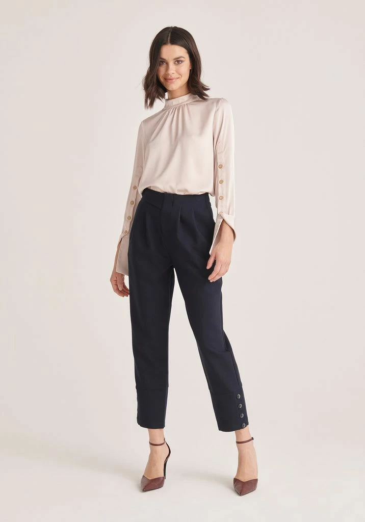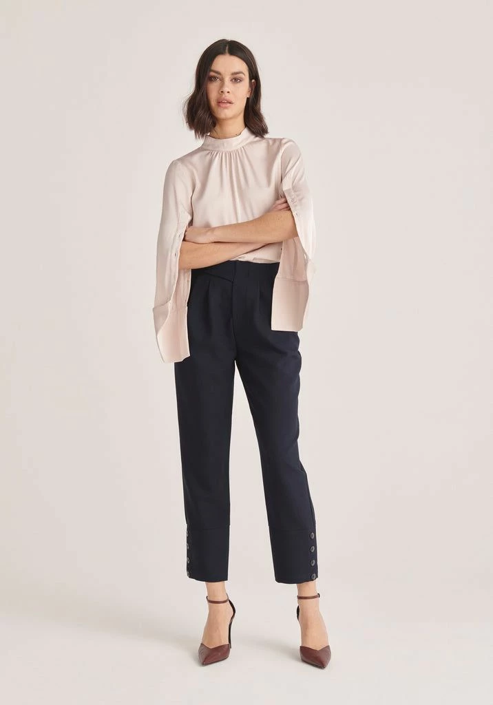 Sharp and minimal, these trousers will deliver subtle details to complete any outfit. They are designed to sit high on the waist and feature tapered cuffs with buttons on each side. Style these with a plain blouse or sweatshirt.