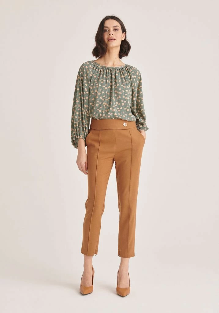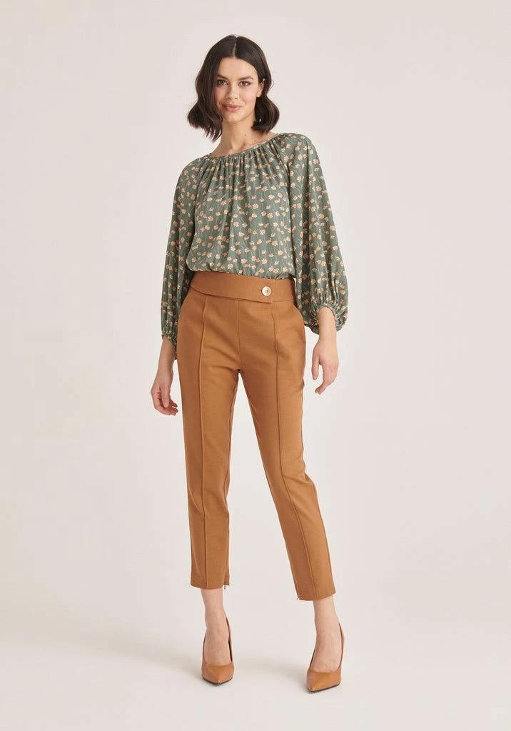 Here at Paisie, we love stylish separates. This floral top is designed in a flattering relaxed silhouette and finished off with voluminous balloon sleeves. Wear yours with slim fit tailored trousers and stilettos for an elegant look.
