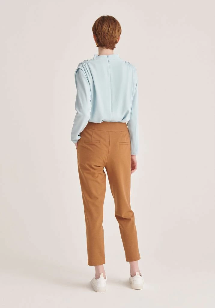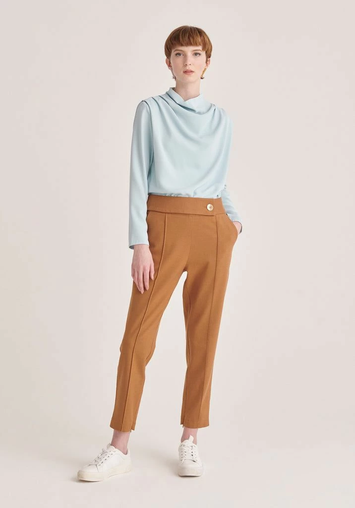 This is a perfect pair of slim fit trousers to suit many figures and personal styles. Designed in a clean and sharp silhouette, they sit high on the waist and are embellished with button detail. Style these versatile trousers with trainers and heels alike.