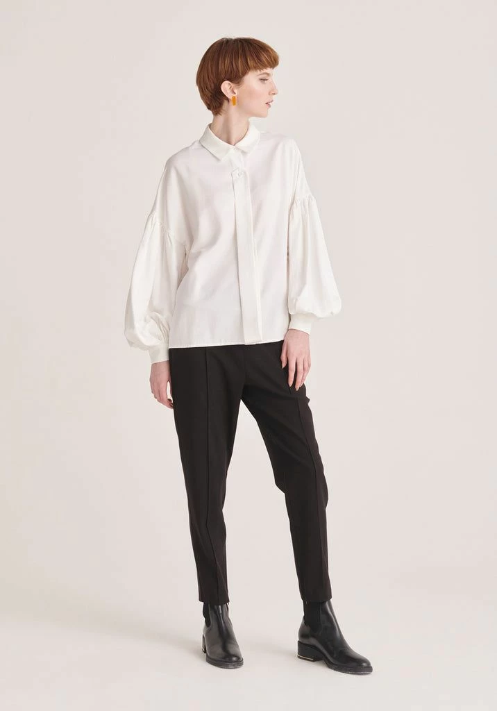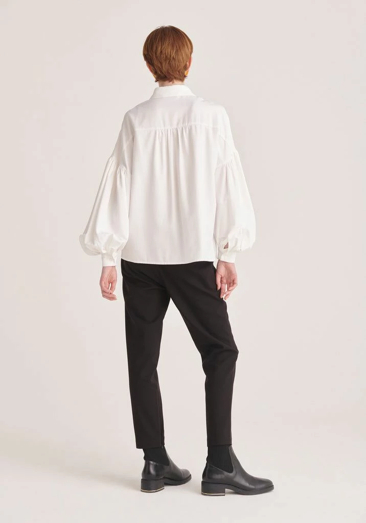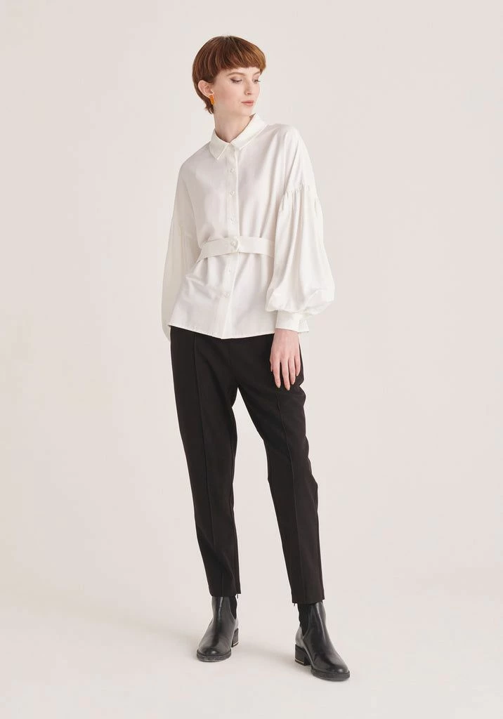This shirt is inventive and versatile which makes it the ultimate contemporary wardrobe piece. Slim silhouette and volume can be adjusted by styling the detachable belt in multiple ways to suit your personal preference. We like to wear ours with smart trousers and skirts.