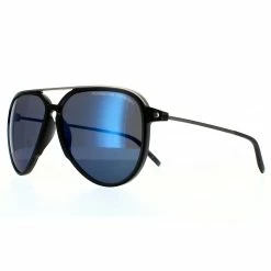 Porsche Design Aviator Mens Black Black Blue Silver Mirror 90041091 Porsche Design are a contemporary aviator style crafted from lightweight metal. The slim line top brow bar and adjustible nose pads provide maximum comfort. The Porsche Design branding features on the slender temples for brand authenticity.