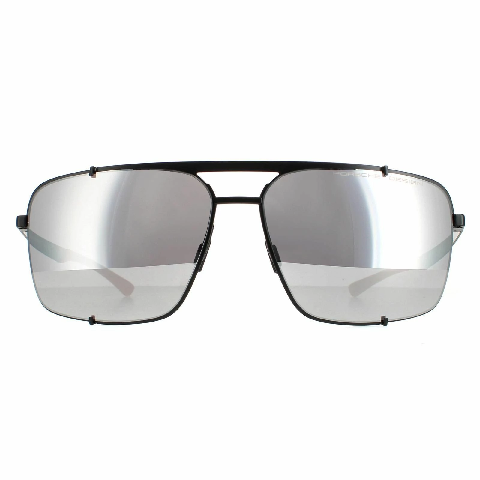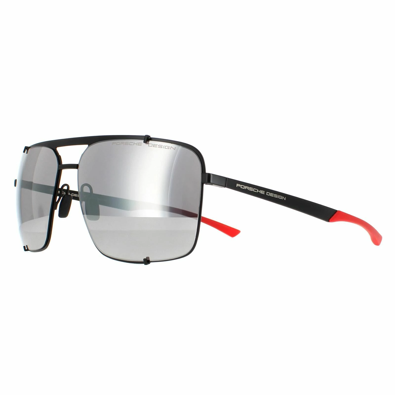 Porsche Design Aviator Mens Black Red Mercury Silver Mirror P8919 P8919 are a squared aviator style crafted from lightweight metal . The slim top brow bar and silicone nose pads ensure all day comfort. The Porsche logo is engraved into the slender temples for authenticity.