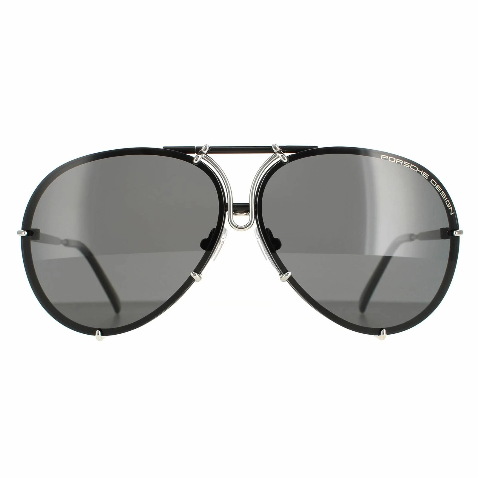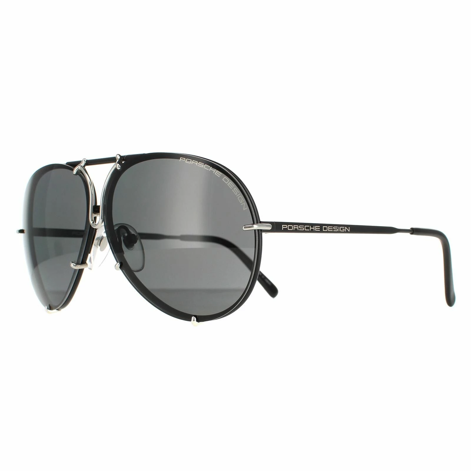 Porsche Design Aviator Mens Black Silver Grey Polarized w Silver Mirror Spare Lens P8478 Sunglasses are taken from the original 1978 Porsche Design collection and this reproduction uses high-tech beta-titanium and polycarbonate materials to update the classic aviator frame with modern materials.