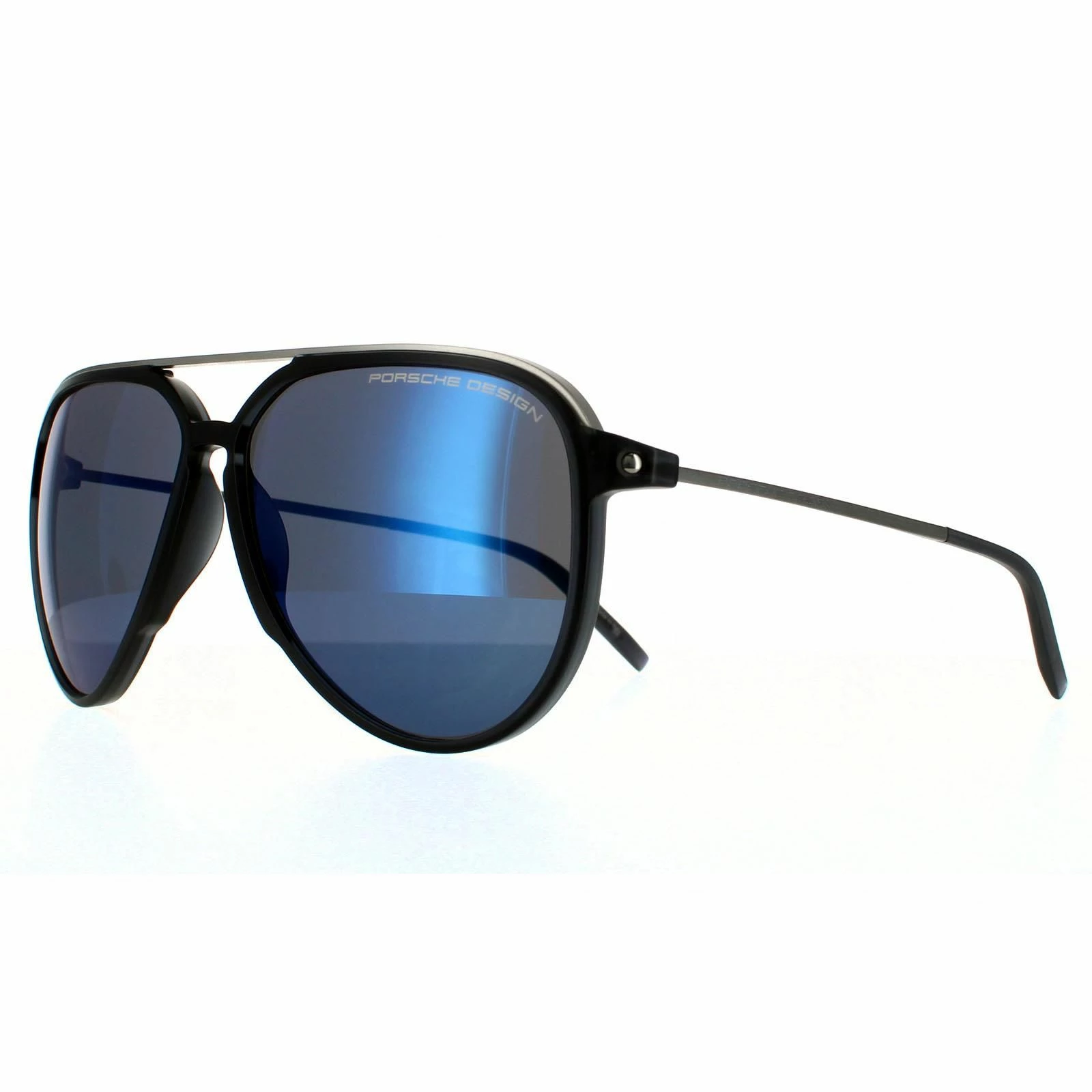 Porsche Design Aviator Mens Dark Grey Palladium Dark Blue Mirror 90041091 Porsche Design are a aviator style crafted from lightweight plastic. The slim top brow bar and plastic temple tips ensure all day comfort. The Porsche logo is engraved into the slim temples for authenticity..
