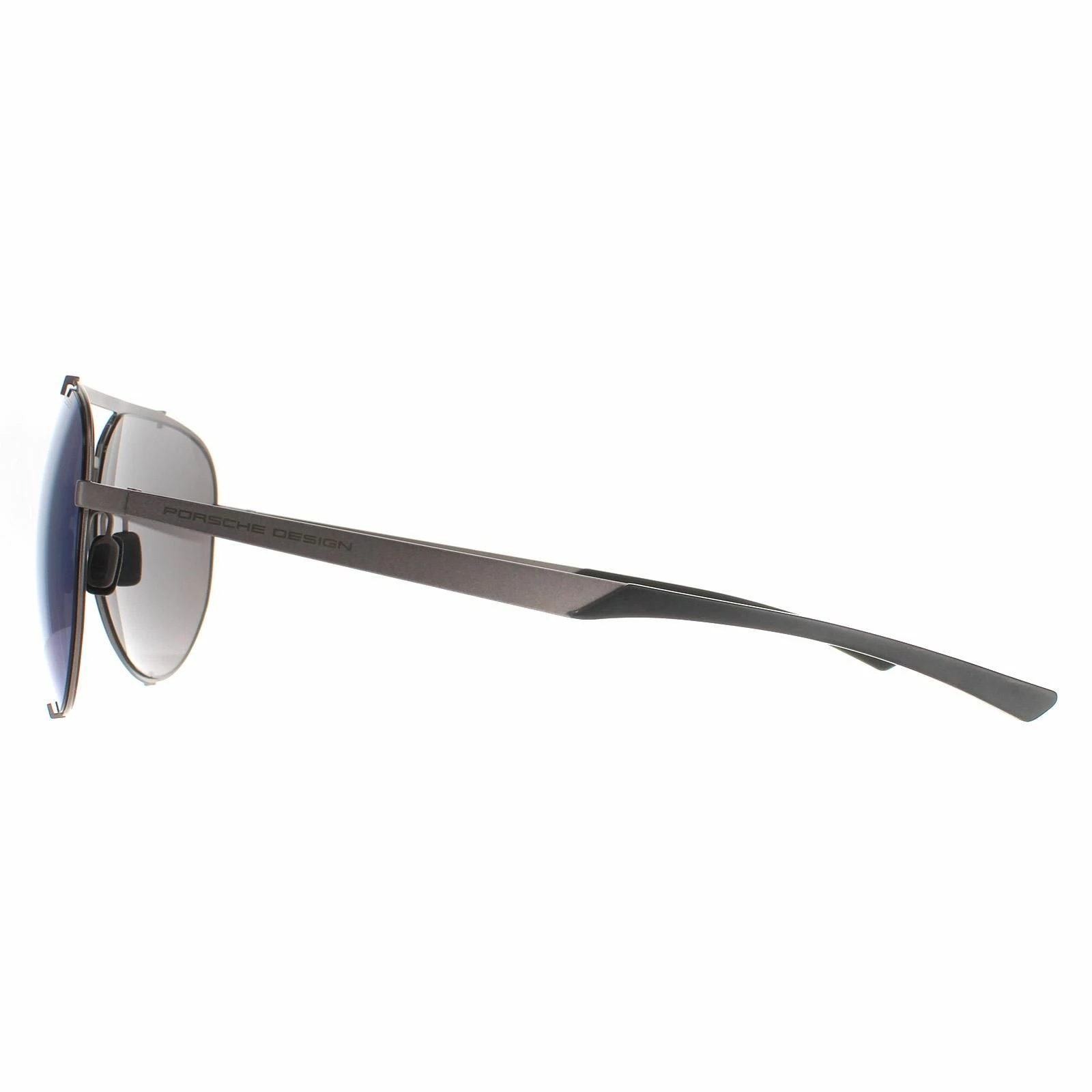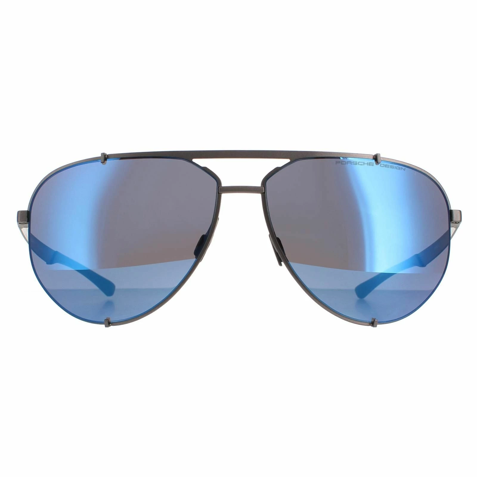 Porsche Design Aviator Mens Dark Gunmetal Black Strong Dark Blue Mirror P8920 P8920 are a stylish aviator style crafted from lightweight metal. The slim top brow bar and silicone nose pads ensure all day comfort. The Porsche logo is engraved into the slender temples for authenticity.