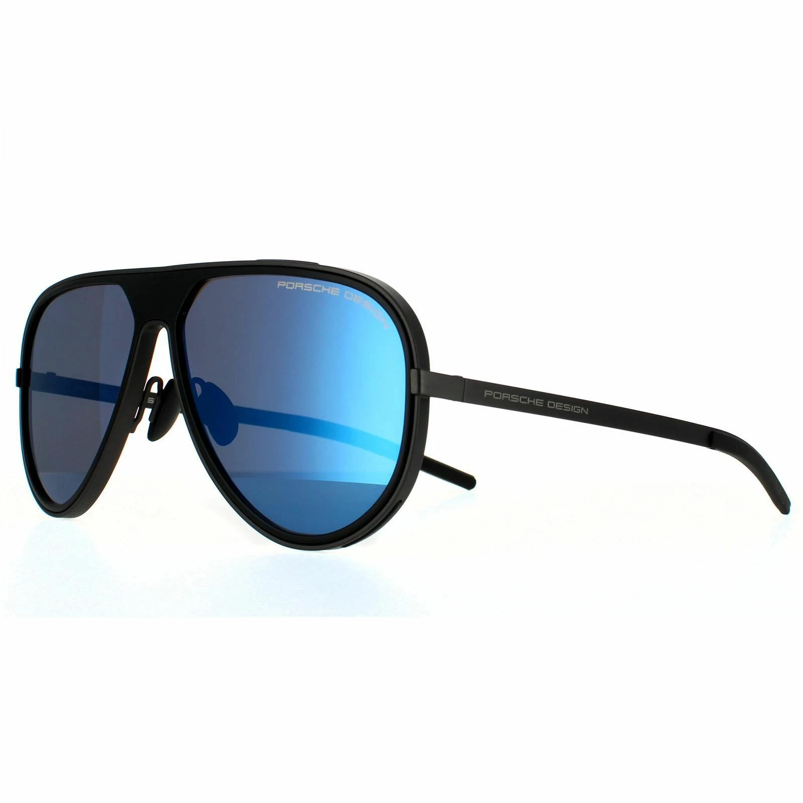 Porsche Design Aviator Mens Gun Dark Blue Mirror 90041091 Porsche Design are a modern aviator style crafted from lightweight metal. The adjustible nose pads provide a personalised fit. The Porsche Design branding features on the slender temples for brand authenticity.