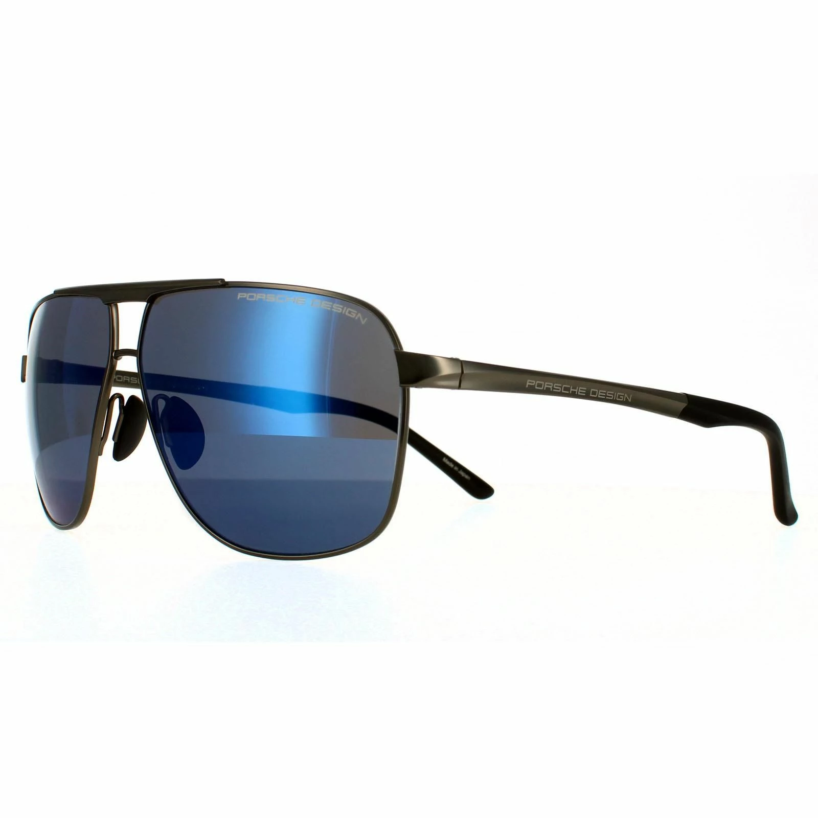Porsche Design Aviator Mens Gun Dark Blue Mirrored 90041091 Porsche Design are a snazzy aviator style crafted from lightweight metal. The slim line top brow bar and adjustible nose pads provide maximum comfort. The Porsche Design branding features on the slim temples for brand authenticity.