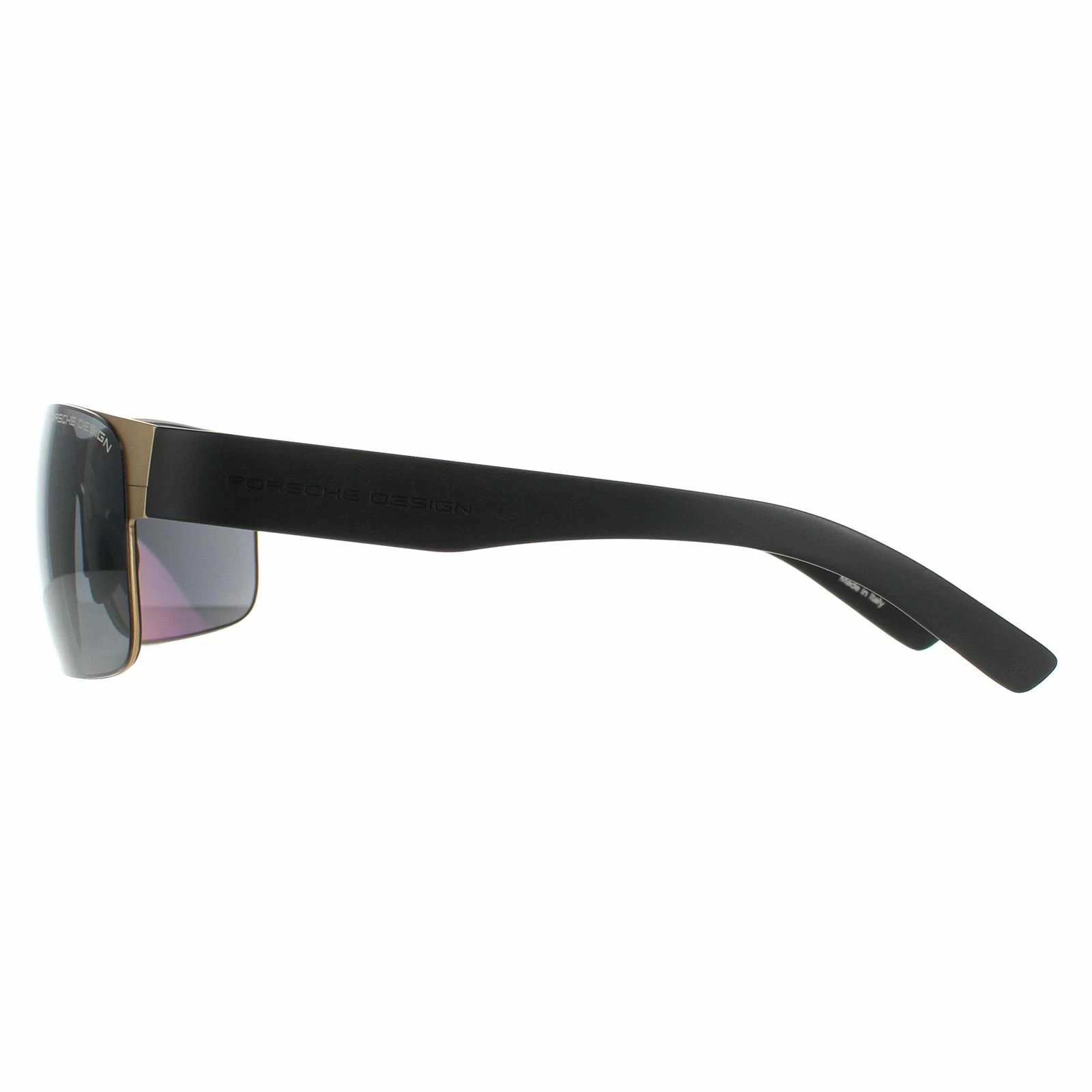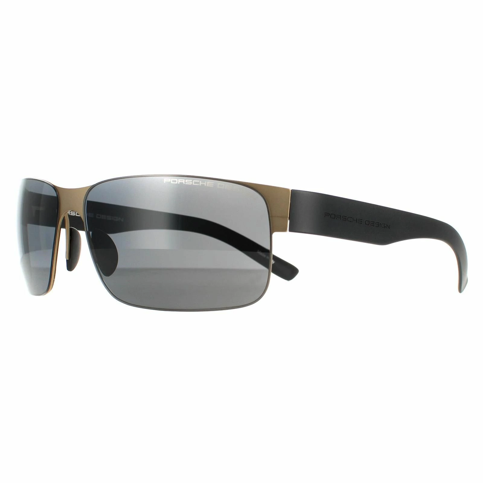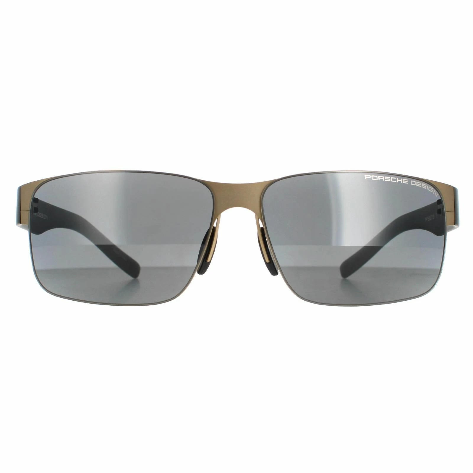 Porsche Design Rectangle Mens Gold Grey P8573 Sunglasses are a semi rimless rectangle style crafted from lightweight metal. The silicone nose pads provide a snug fit while the Porsche design features on the temples for brand authenticity.